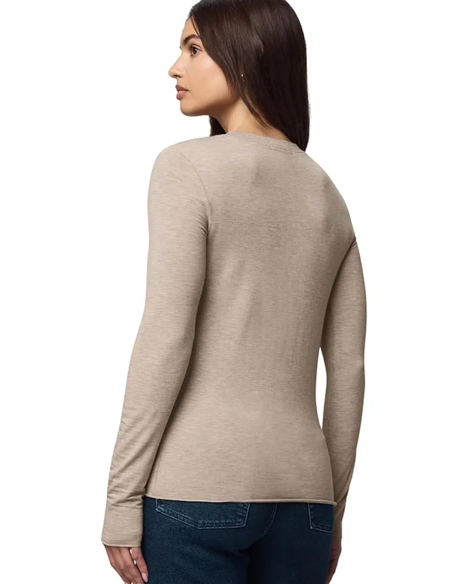 - Create a comfy and basic look by wearing the Splendid® Bamboo Long Sleeve Tee. The super-soft tee has a crew neckline, long sleeves, and a straight hemline. The stylish tee has a fitted silhouette and stitch details on the hem and cuffs.
