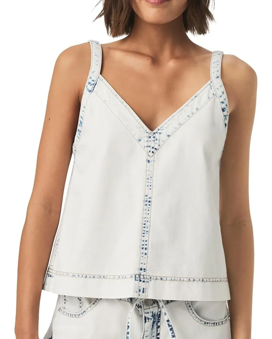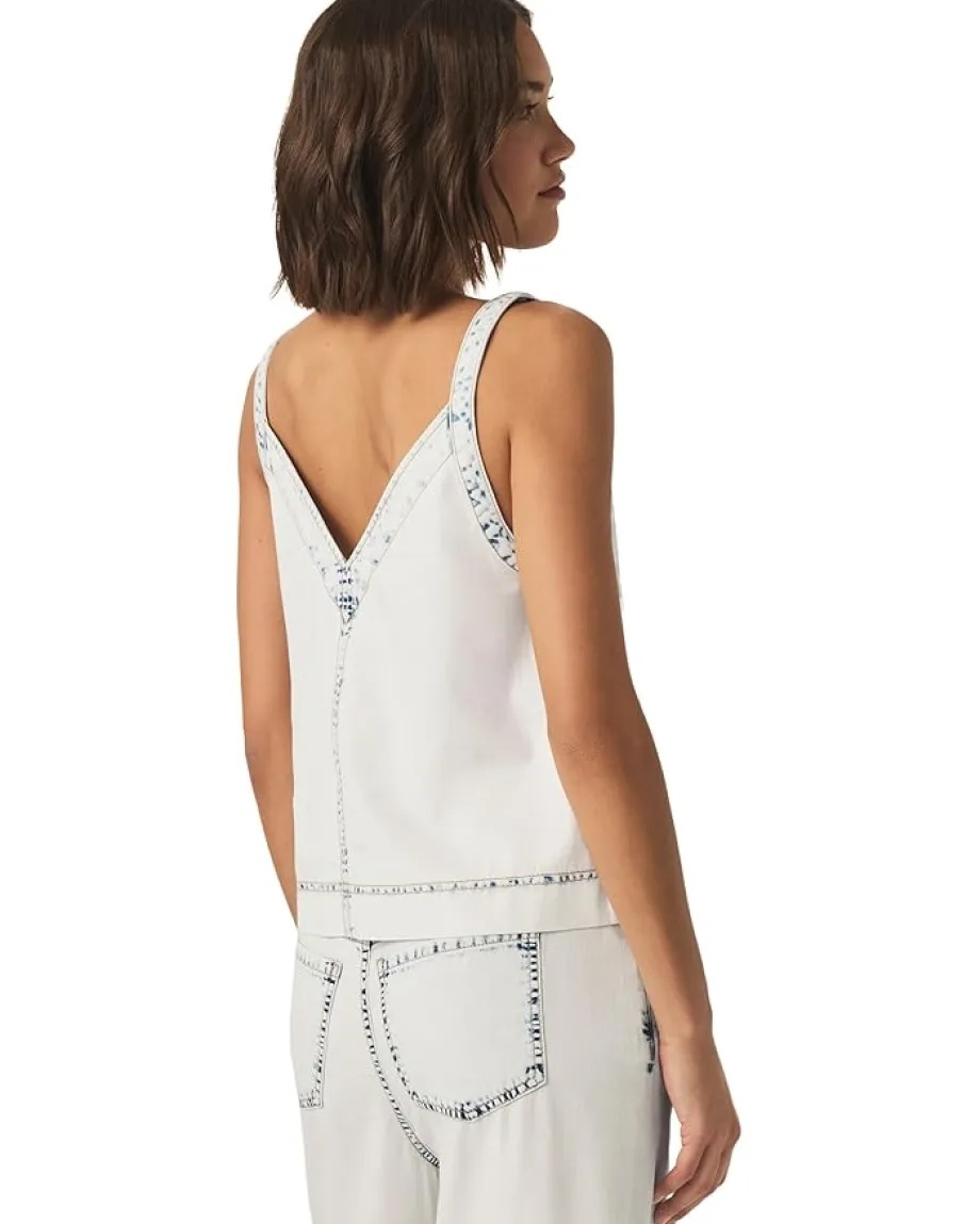 - Make waves in the Splendid® Ultra Bleached Tank, where effortlessly cool meets sun-soaked edge. This ultra bleached indigo dream flaunts a flattering V-neckline and classic fit, perfect for layering or wearing solo. Crafted for comfort with a pull-on style and sleeveless silhouette, it’s your go-to for sun-chasing days and laid-back nights. The standout detail? Straddle stitch accents running along the side seams, front, and center back-adding texture, dimension, and that “worn-in, lived-in, loved-it” vibe.