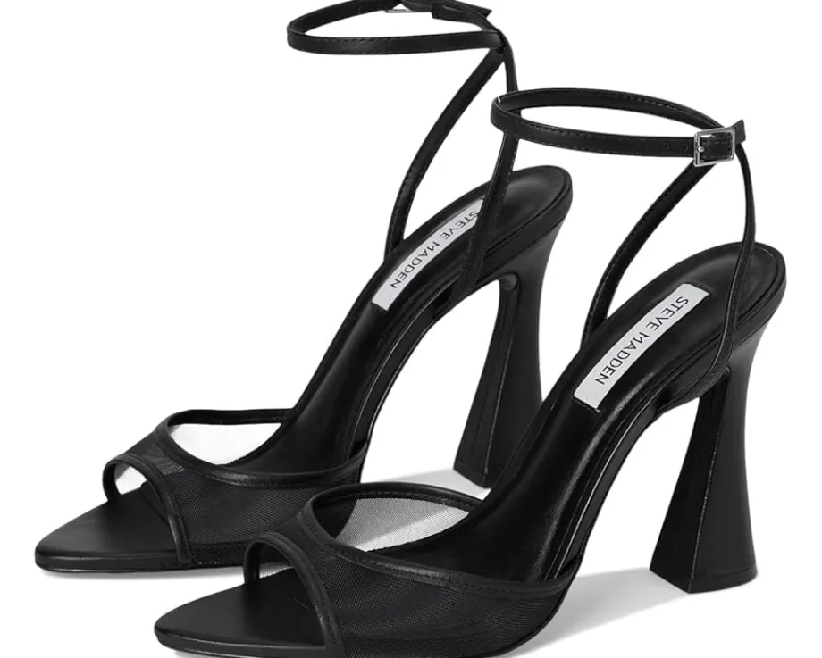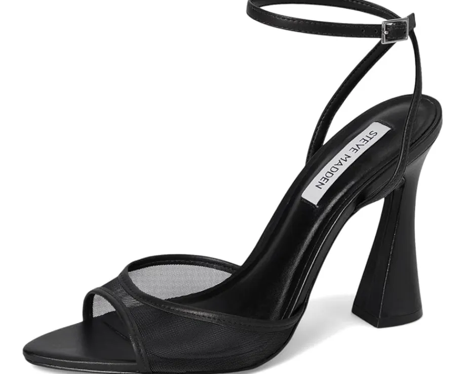 - Look glorious in the flawless beauty of the Steve Madden® Beki flared heel sandals, designed with an open toe and adjustable buckle detail running along a sleek ankle strap. Crafted from a leather upper, these shoes are the perfect match to your chic style.