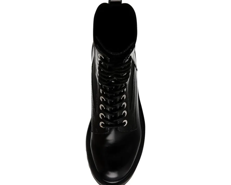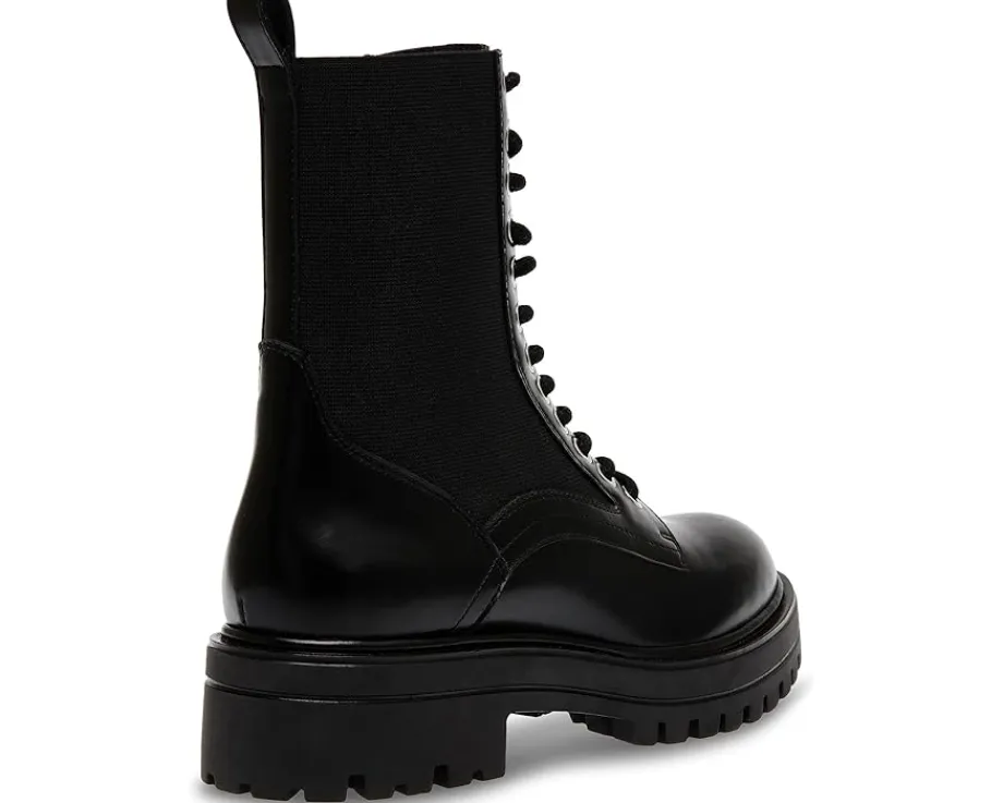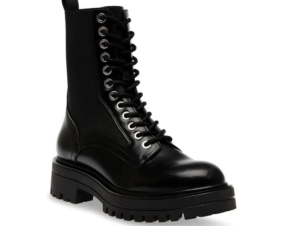 - Casual yet chic, the Steve Madden® Kenny complement all outfits with excellence. These featire a calf-high length, a round toe shape, laces for adjustability, and a pull-ab on the back for donning and doffing. The shoes are engineered with a leather upper, synethetic rubber lining, and synthetic insole.
