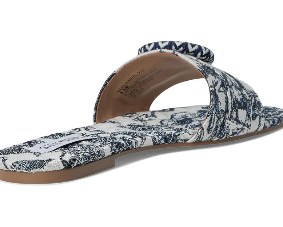 - Casual and chic, the Steve Madden® Merla Sandals are a must-have for everyday wear. The open toe, slip-on style sandals feature a cotton upper, synthetic rubber lining, and comfortable rubber insole. The decal on the strap adds a touch of elegance to your step.