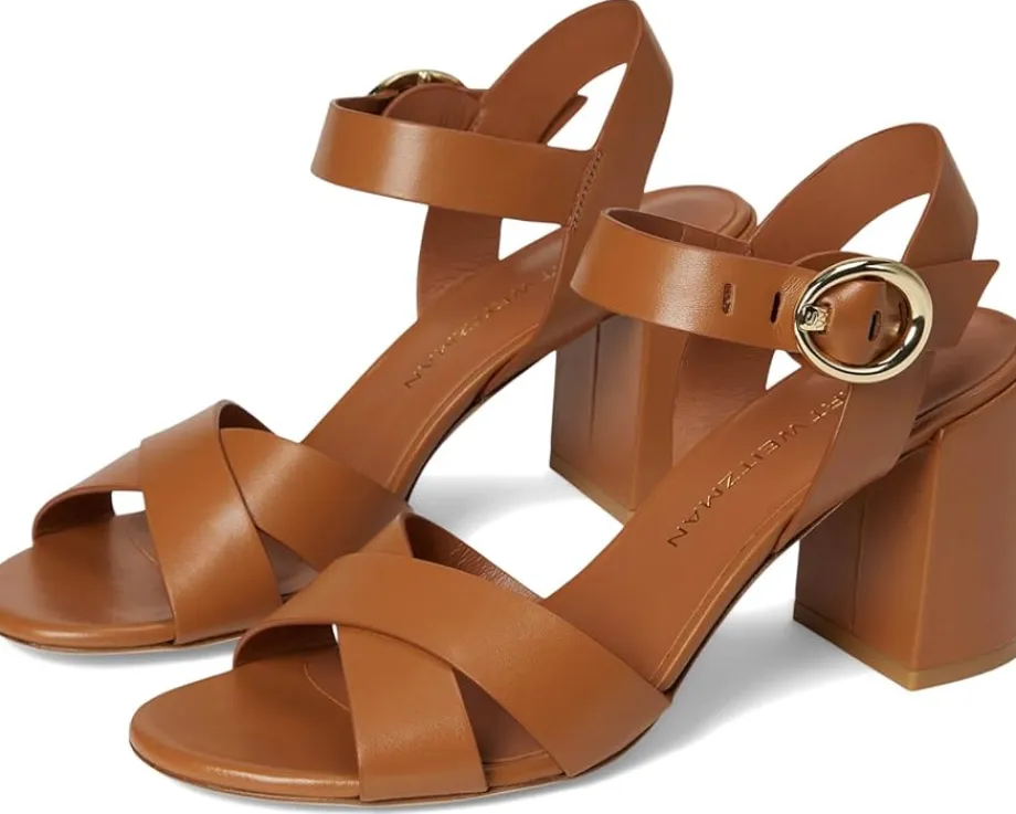 - The Stuart Weitzman® Benni Block 75 is a mid-top sandal with crisscross leather upper straps and an adjustable buckle closure. With a block heel, this sleek silhouette features an open almond toe shape.