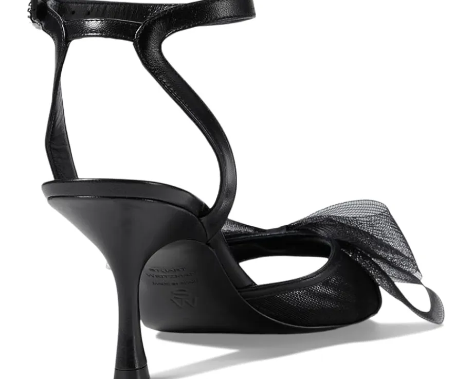 - Luxe layered bow exudes the charming beauty of the Stuart Weitzman® Blushing Bow 75 San. The sandal features nylon upper with buckle adjustable ankle strap closure and stiletto heel for added lift.