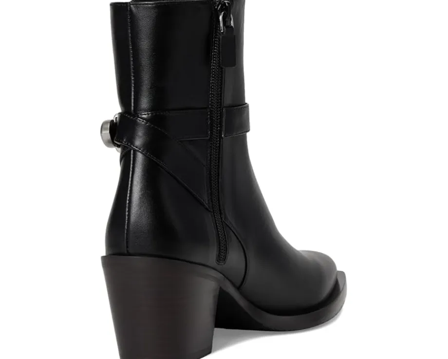 - Make a bold fashion statement wearing the Stuart Weitzman® Maven Western Booties. These heeled boots are made of a leather upper, insole, and lining. The zippered side closure offers easy wear, while the buckle closure ensures a perfect fit. These leather boots make a great addition to your footwear collection.