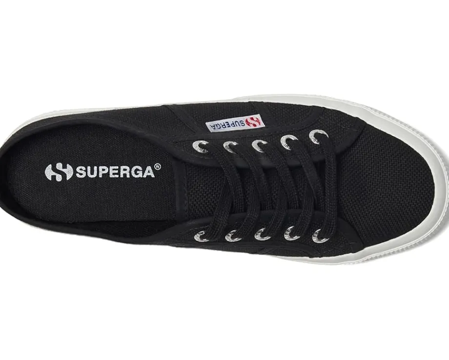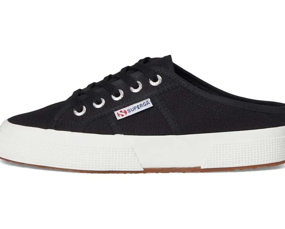 - The Superga® 2402 Mules are the perfect blend of style and comfort. Made with premium canvas upper and soft cotton lining, these mules will keep your feet feeling happy all day. The padded insole adds extra support, while the cutaway back gives them a trendy touch. Complete with the iconic Superga tab on the side and heel, as well as embossed eyelets, these mules are a must-have for your shoe collection. Finished with a vulcanized gum sole, they offer both durability and style.