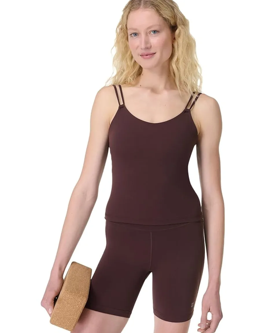 - The Sweaty Betty® Ultimate Studio Strappy Tank is the ultimate choice for yoga, Pilates, and barre enthusiasts. Crafted from quick-drying, sweat-wicking fabric with a soft, supple feel, it offers unmatched comfort and functionality. Featuring a scoop neckline and elegant crossover strap detailing at the back, this top combines style with performance. With built-in bra support and removable pads, it provides convenience and confidence for every workout.