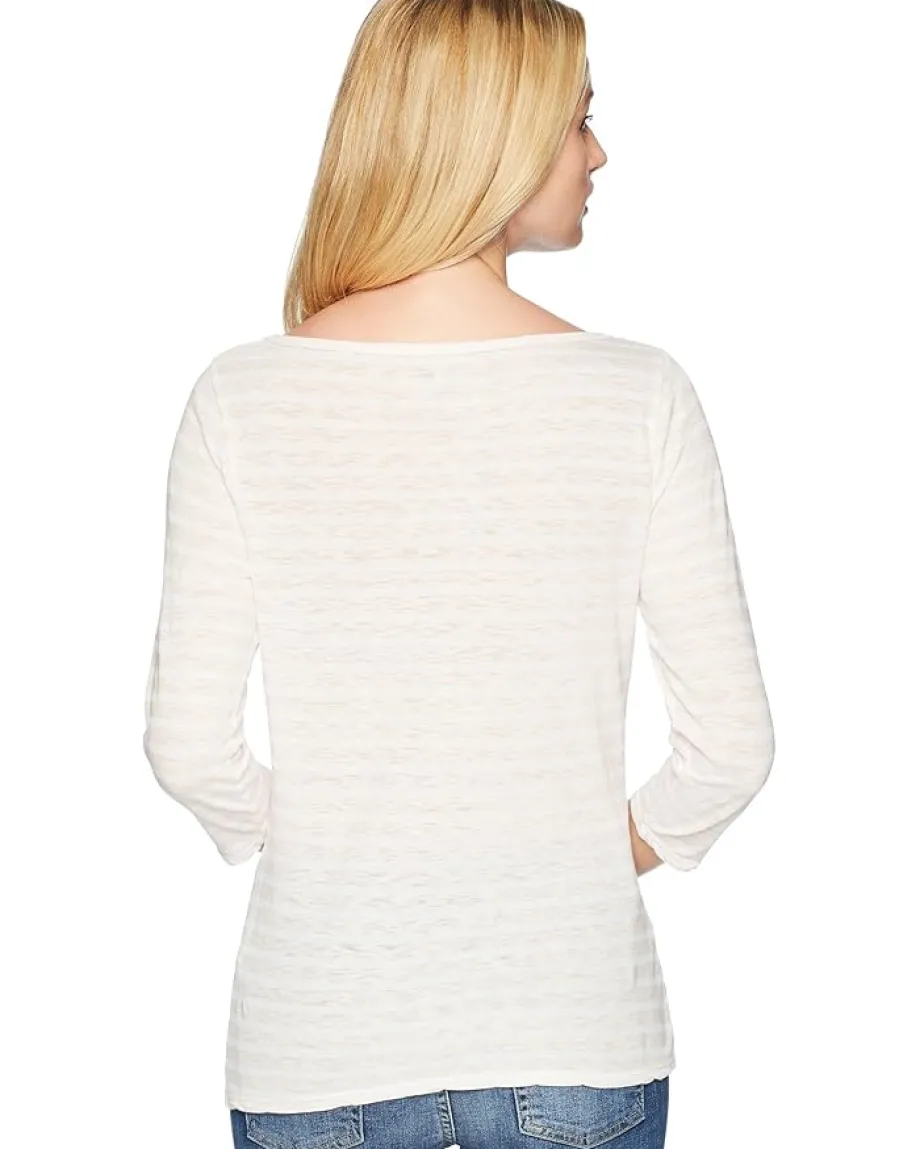 - Take it easy with the cool Three Dots™ Saguaro Stripe 3/4 Sleeve British T-Shirt.