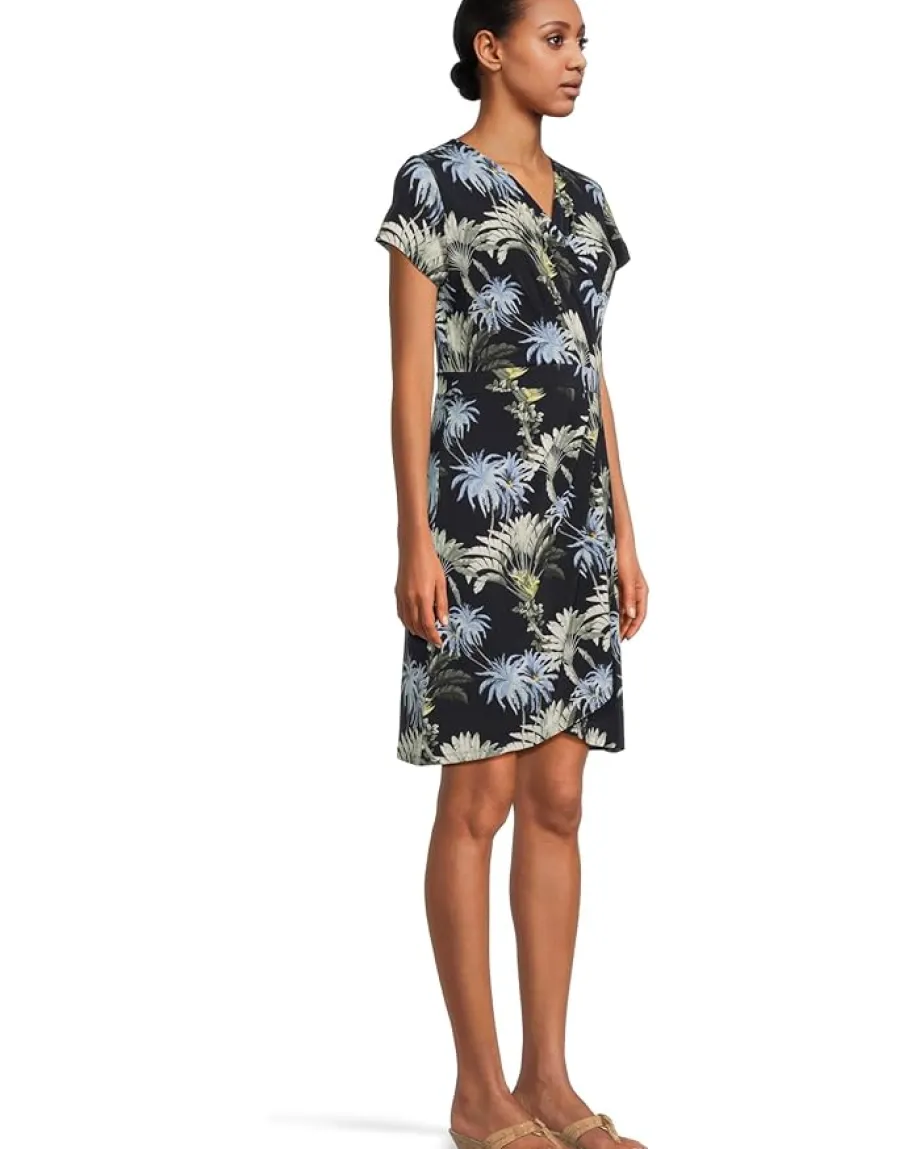 - Redefine your fashion statement donning the Tommy Bahama® Carmela Palisade Palms Dress. The pull-on style dress features a V-neckline, short sleeves, a beautiful tropical print allover, and an above-the-knee silhouette.