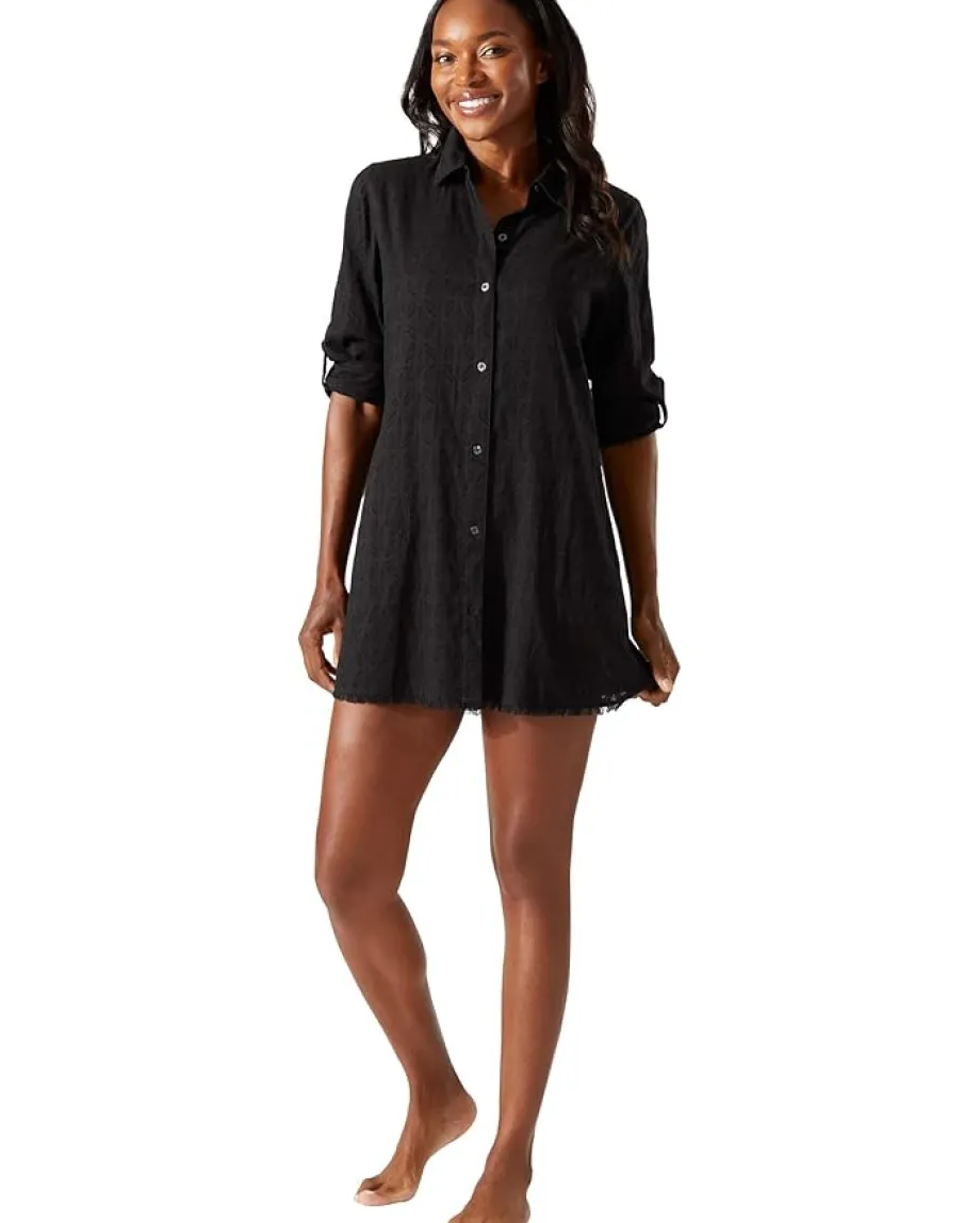- Glide along the poolside with confidence in the attractive Tommy Bahama® Cotton Clip Jacquard Boyfriend Shirt.