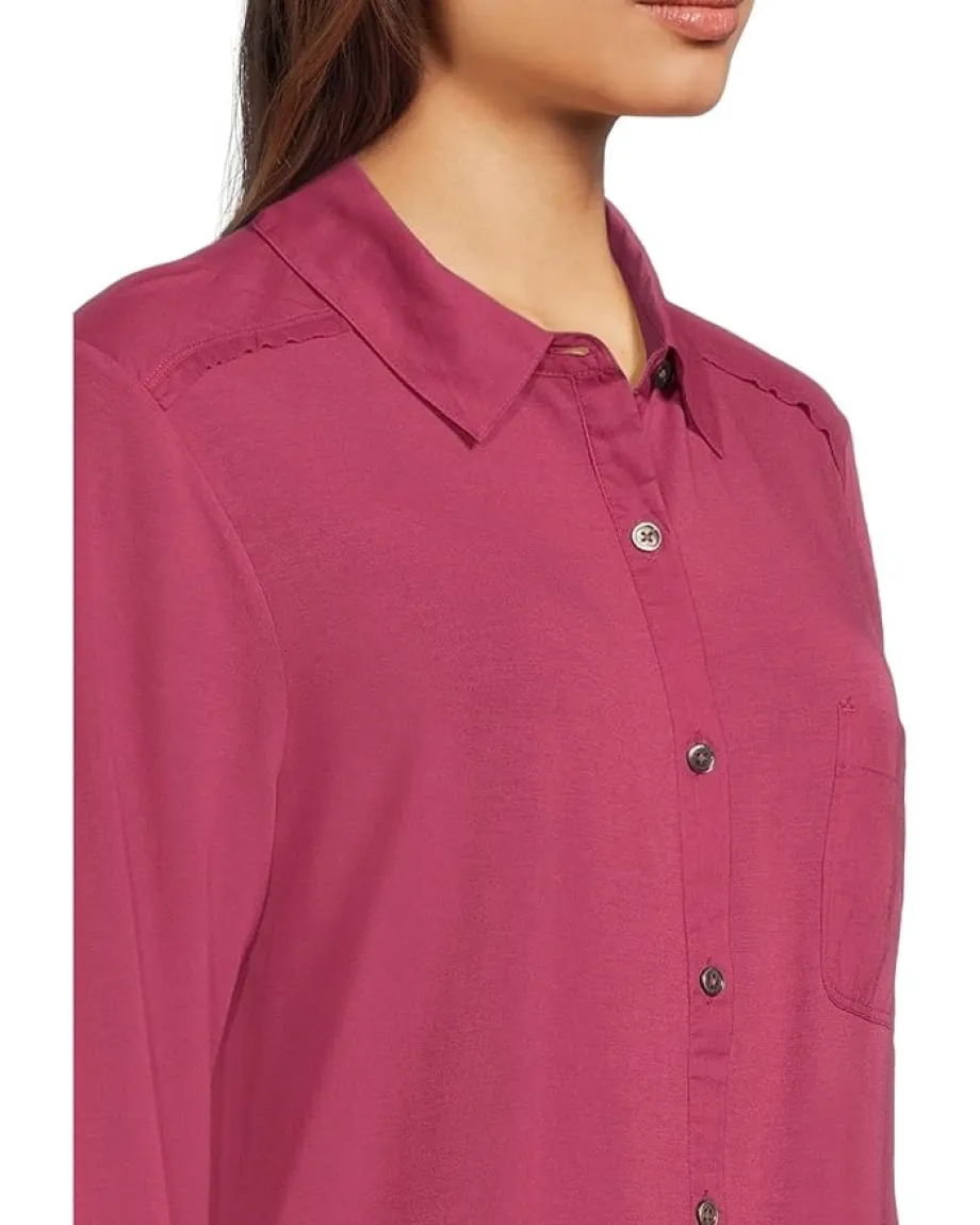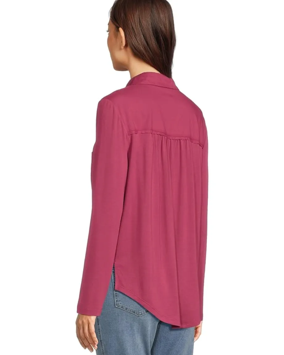 - Long-sleeve hybrid camp shirt with a hint of stretch. Chest pocket, woven trims and panel details. A must-have addition to your everyday style!
