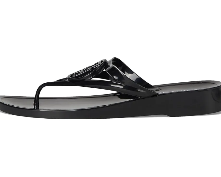 - The Tommy Hilfiger® Women’s Vedna jelly flip-flop with a low edge and instantly recognizable logo perfectly balances this signature style with a fresh attitude. Crafted from polyester upper, lining, and leather insole, this pair of sandals features open square toe, slip-on style, low-top silhouette, and brand detailing on the footbed.