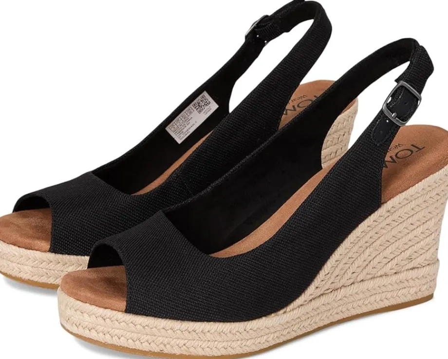 - The TOMS® Camilla sandals are pee-toe-shaped slingback espadrille wedges that are perfect to pair with your dresses and chic outfits. These heeled sandals are made of a fabric upper and lining. The custom CloudBound foam insole offers all-day comfort and support, while the adjustable buckle closure ensures a customized fit. Make your fashion statement wearing these wedge sandals.