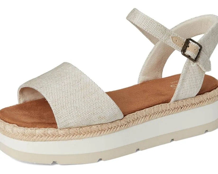- Textured upper straps and braided detail define the exquisite look of the TOMS® Ronan platform sandals. This pair is designed with a nylon upper and open round toe shape.
