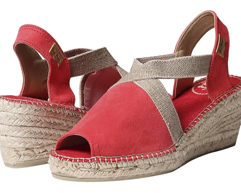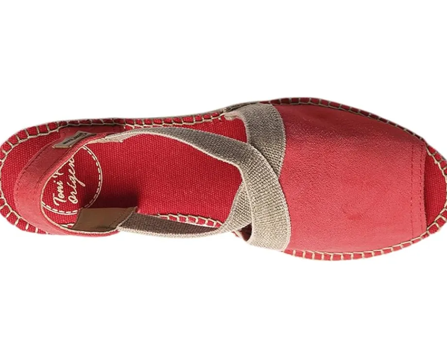 - Peep toe sling back wedge. Back strap displays stitched tag logo.