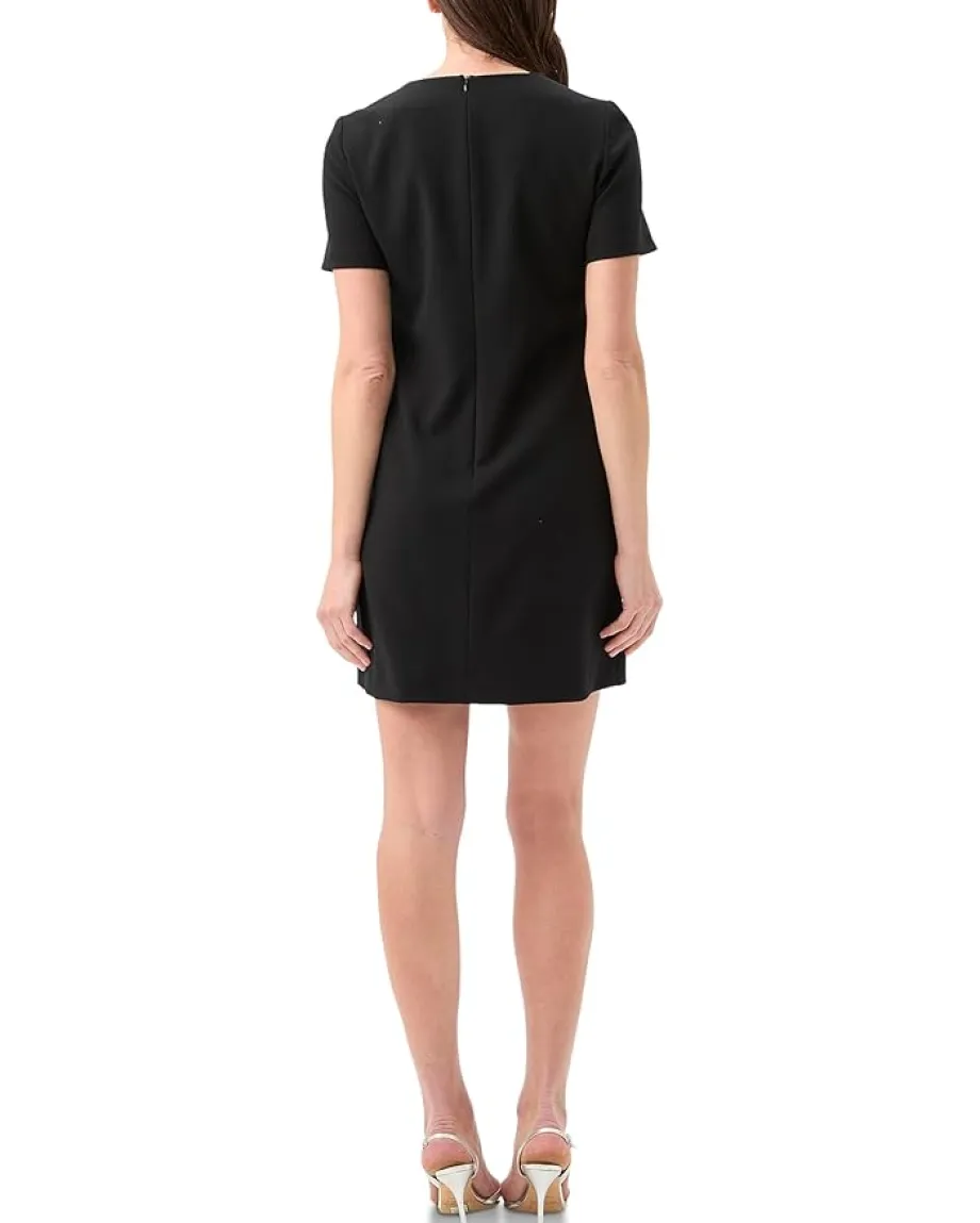 - The Trina Turk™ Diamonds Dress is a sophisticated short sleeve mini silhouette with a high neck and elevated fabric, complimented by charming rhinestone bows along the front that sit on top of a pleat.