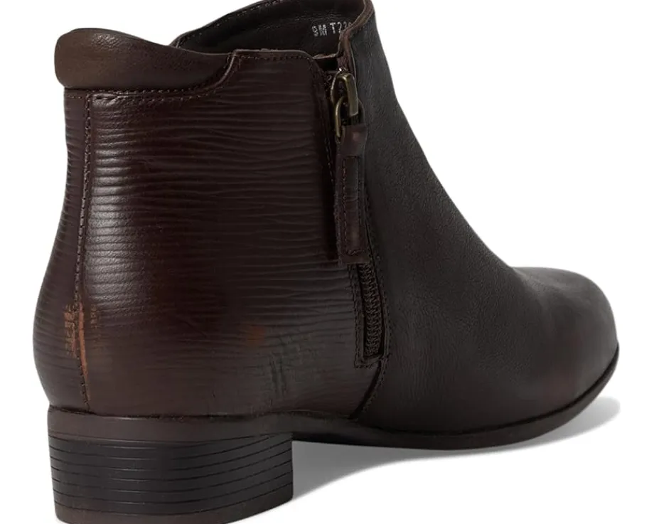 - Take every step in style and comfort by wearing the Trotters® Major Embossed boots. The round-toe boots have slight block heels, side zipper closure, and a sleek look. The leather upper with tricot fabric lining and removable cushioned footbed with arch support add additional comfort to the feet for prolonged wear.