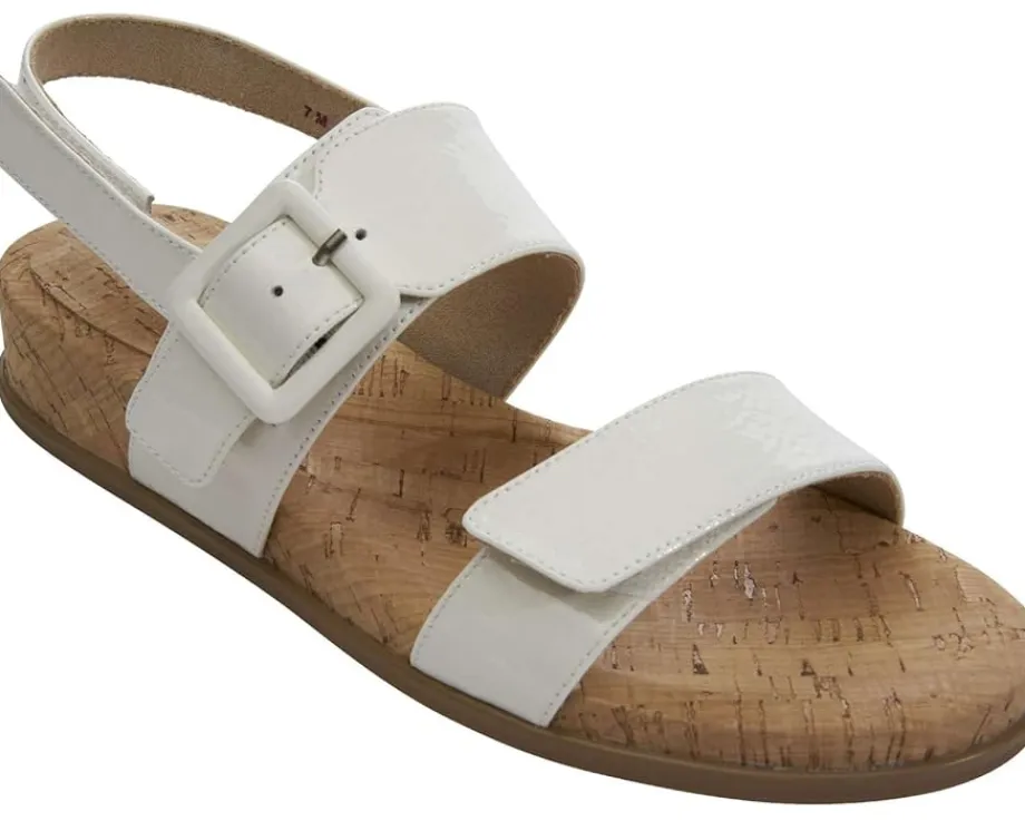 - The Vaneli® Nelly flats are extremely comfortable for all-day wear and work well with your everyday look. the slip-on style flats have an open round-toe design, ankle support strap with backstrap buckle closure, and an adjustable hook-and-loop strap at the vamp for added convenience. The flats have leather uppers, lining, and faux leather insole.