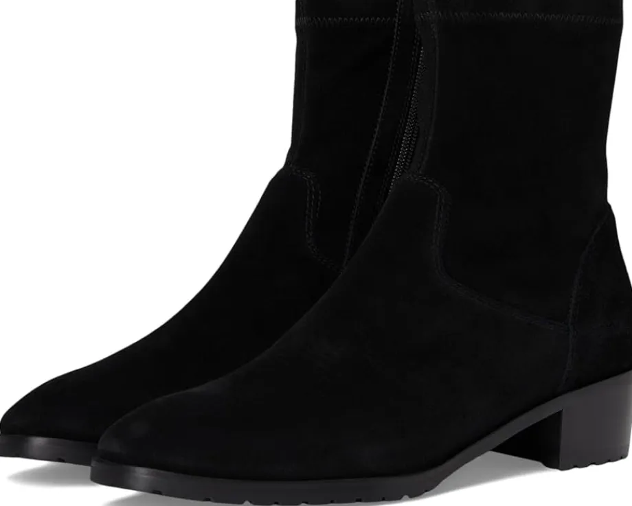 - Crafted with a stretch suede upper, the Vaneli® Oleg ankle boot features a zippered side closure for easy wear and a cushioned leather footbed that supports all-day movement. Its stacked block heel adds a subtle lift, while the treaded rubber outsole ensures reliable traction in varied conditions.