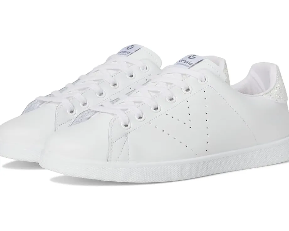- Sleek and sporty, the victoria® Tenis Leather & Glitter Sneakers amp up your style game and offer next-level comfort. The low-top sneakers feature a leather upper with a rounded toe shape, cotton lining, and a cotton-covered comfort foam insole. The style comes with a classic V detail on the side panel and the organic cotton laces ensures easy adjustability.