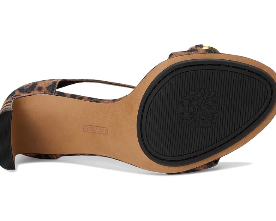 - These glamorous and sophisticated Vince Camuto® Aurelia Chain Link High Heel Sandals are available in a variety of finishes- patent, metallic, croc, and leopard. The sleek, open-toe design is elevated by a bold gold chain embellishment on the front strap, adding a touch of luxe detail. A delicate ankle strap with a goldtone buckle closure ensures a secure and adjustable fit, while the high blade heel enhances the shoe’s elegant silhouette. Crafted from luxe leather upper, this sandal is perfect for special occasions, effortlessly complementing evening gowns, cocktail dresses, or chic tailored looks. A true statement piece for any wardrobe.