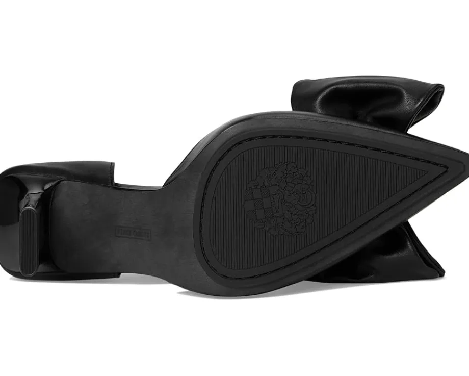 - The Vince Camuto® Burke Bow Detail Dress Pump, an elegant two-piece high heel pump, has a tonal blade heel. An oversized leather bow adorns the front of the dress pump, which features a padded footbed and rubber blend outsole. Crafted from leather upper, polyester lining, and rubber insole, this pair of sandals features pointed toe, slip-on style, and brand name on the footbed.