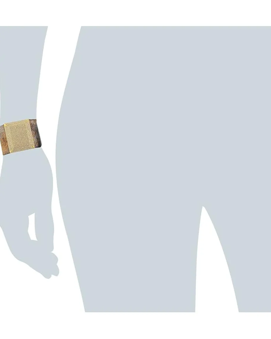 - Leather bracelet with gold-tone stainless steel plate.