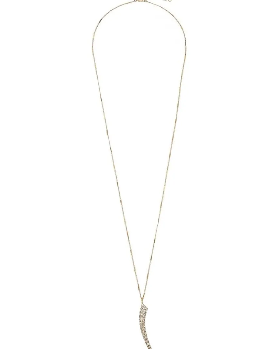 - Necklace feature horn pendant with pave detail.