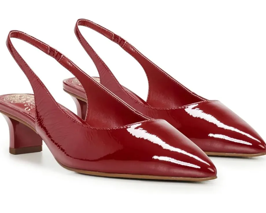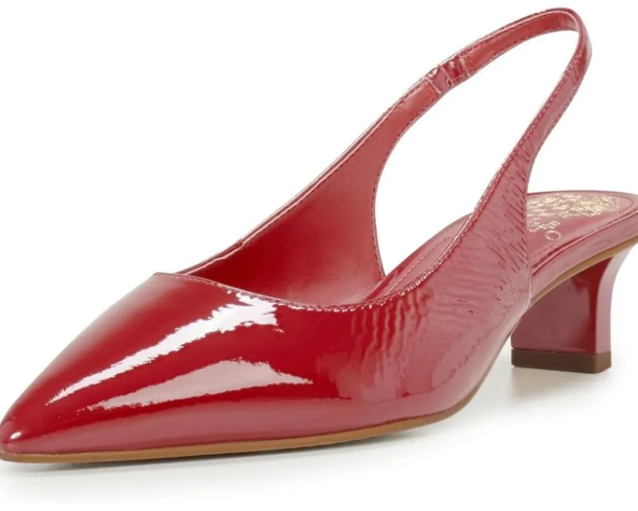 - Enjoy dazzled delight comfort wearing the low-top Vince Camuto® Pilar Pumps. The pointed toe lightweight footwear features leather upper construction with kitten heels and gored slingback strap fostering an easy bungee closure.