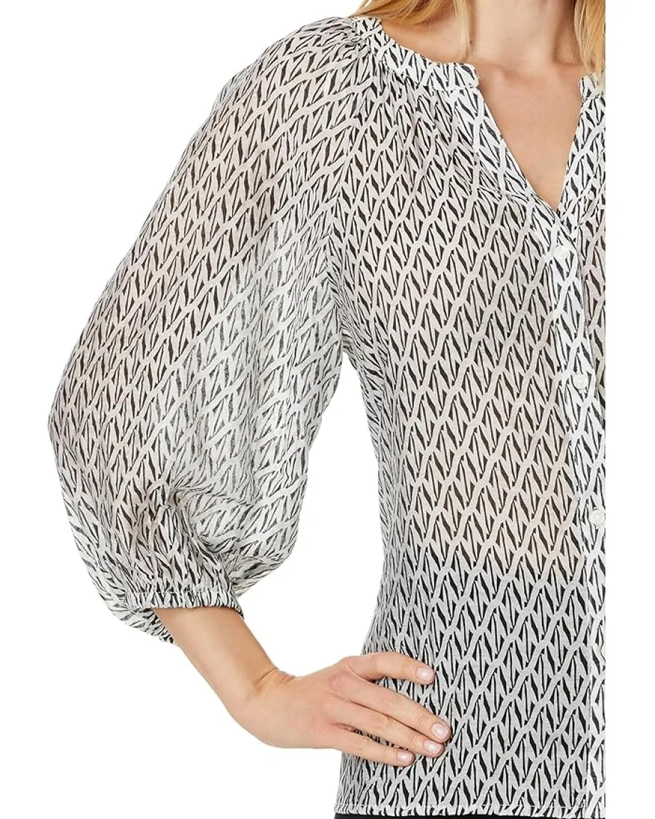 - Whether you’re getting ready for work or a formal event, the Vince Camuto® Raglan Sleeve Button Down Blouse is a great choice. The long raglan sleeves, V-neckline, and straight hem add to its style. This printed blouse comes with a buttoned front closure for easy wear. The polyester fabric provides superior comfort and breathability. Perfect to pair with trendy bottoms and casual pants, this button-down blouse makes a great addition to your wardrobe.