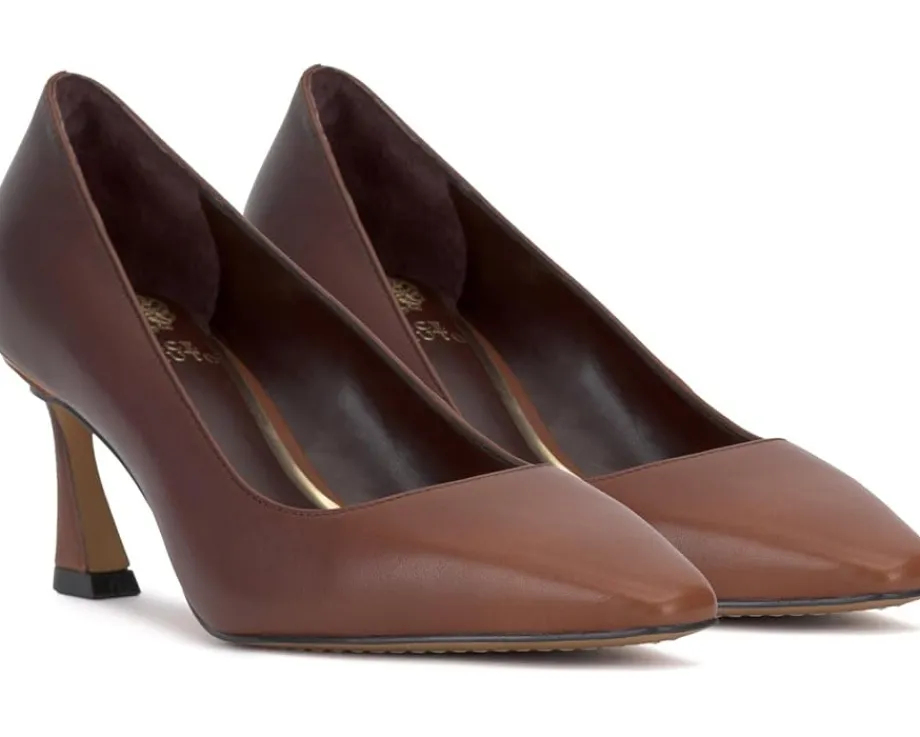 - Look elegant and stay comfortable from day to night wearing the Vince Camuto® Sabrily Pumps featuring a rich leather upper in combination with a breathable polyester lining and a cushioned rubber insole. The pointy almond toe of these shoes is rightly balanced by the flared and angled stiletto heel, bringing a lovely fusion of the classic and the contemporary.