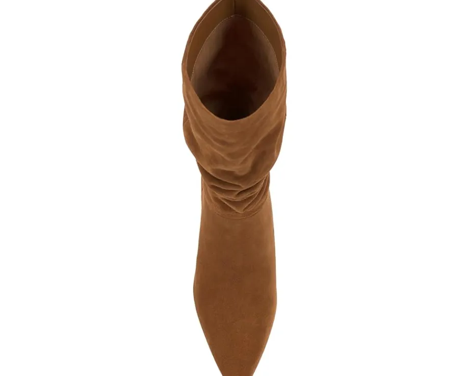 - Throw retro vibes wearing the Vince Camuto® Skylar. Designed with a slouch, the ankle-high boot will make every outfit look perfectly styled. The pull-on pair features tumbled leather upper with a chunky heel and snip toe silhouette.