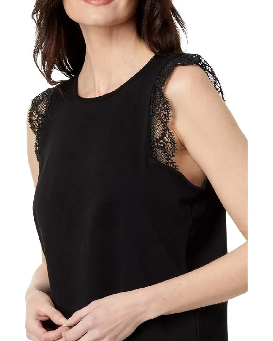 - Sleeveless construction with lace trim detailing on the armholes.