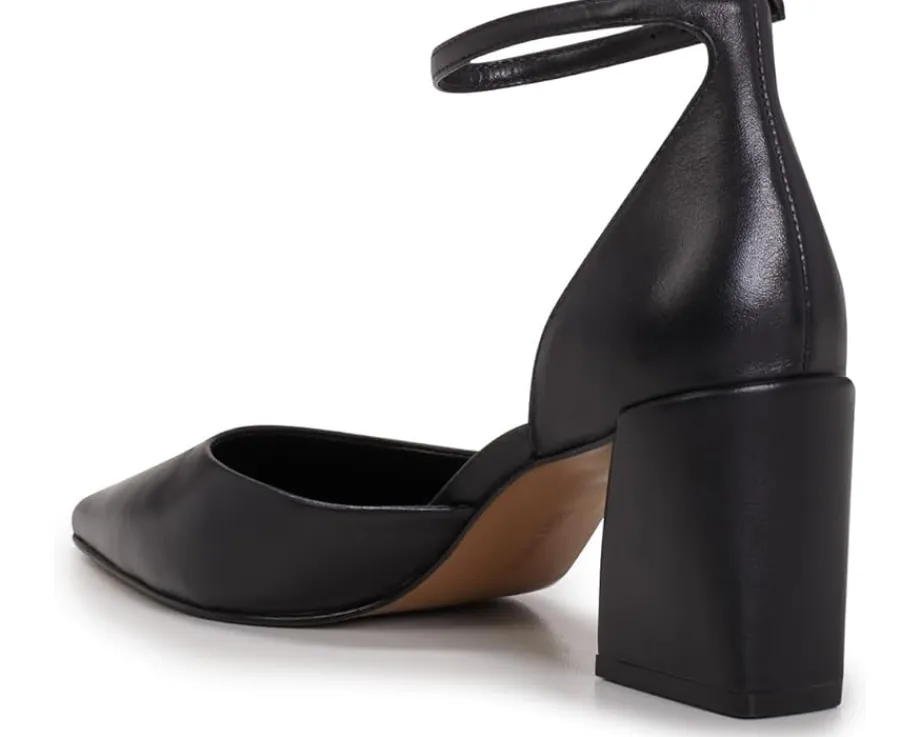 - Sorenn is a two piece, point toe pump with adjustable ankle strap and buckle closure. The silhouette is versatile and works for all four seasons. The sculpted heel is leather covered and measures 2.75 inches. Thanks to the comfort sock and rubber outsole, your feet will be ready to take you wherever you want to go.