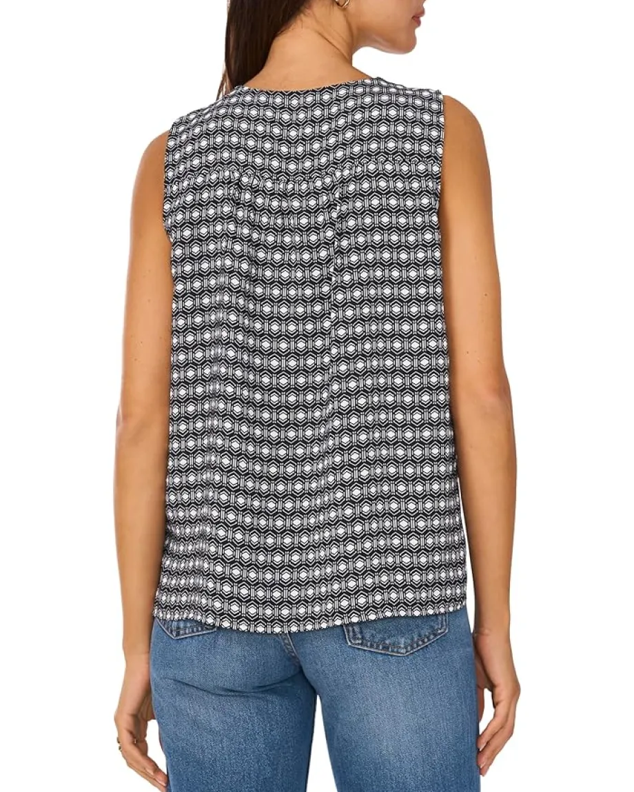 - Stylish and comfortable, the Vince Camuto® V Neck Sleeveless Blouse makes a great addition to your wardrobe. It is styled with a V-neckline and a straight hem. This sleeveless blouse is made from polyester fabric that takes your comfort to the next level.