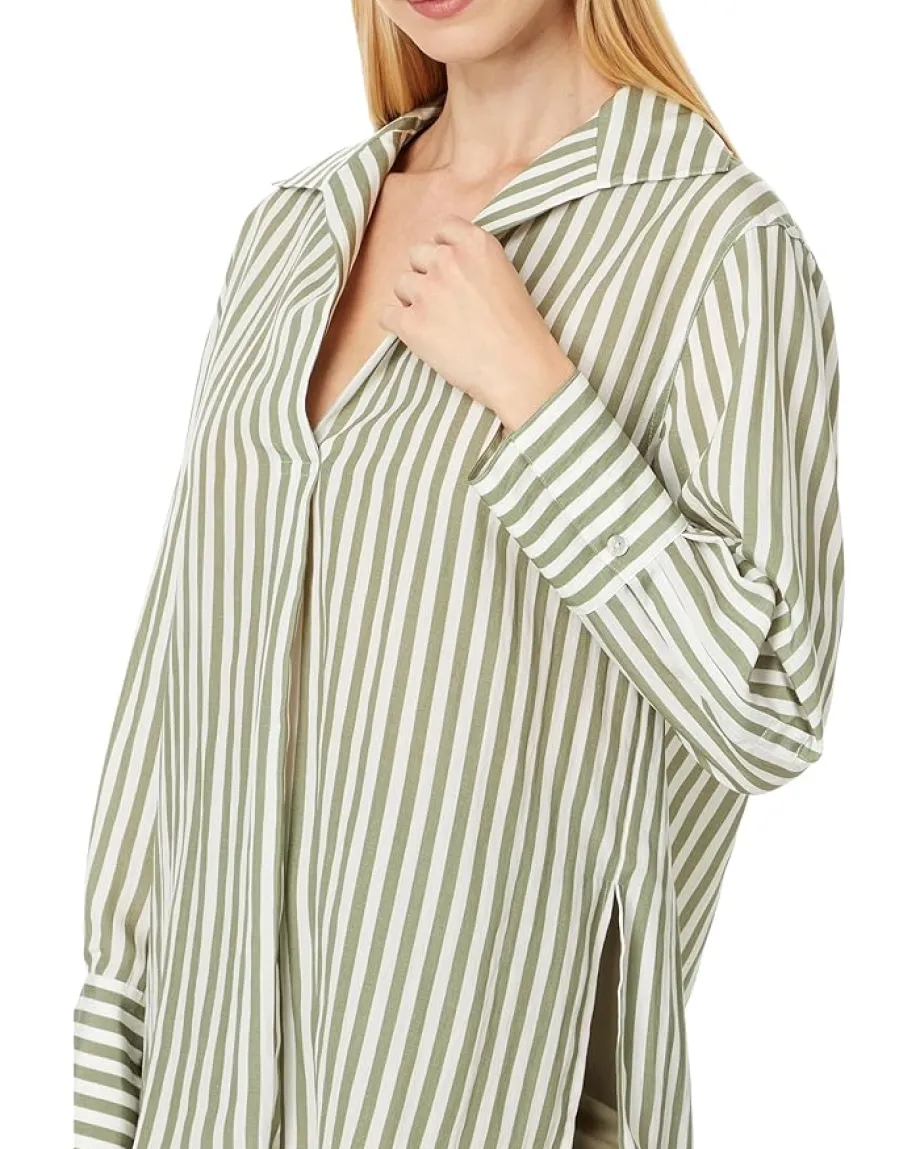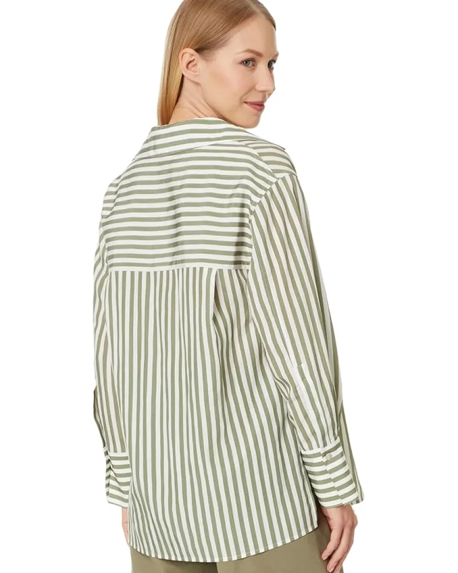 - Exhibit your classic look donning the Vince® Coast Stripe Shaped Collar Pullover. This relaxed-fit shirt features allover stripe print design, collared V-neckline, and long sleeves with buttoned cuffs.