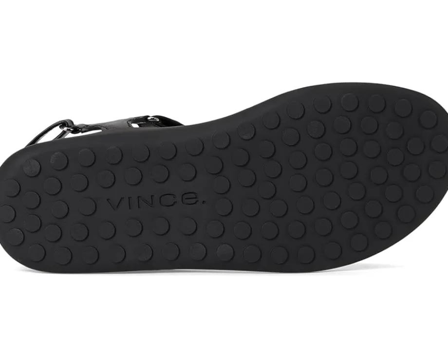 - The Vince® Summer Strappy Sandals combine stylish aesthetics and impeccable comfort. The open round-toe sandals are crafted with a leather & fabric upper with a chic toe loop, fabric lining responsibly sourced from Leather Working Group certified tanneries material, and a foam insole. The double hook-and-loop closure is designed for a secure fit.