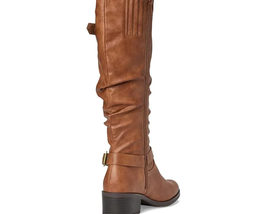 - Saddle up for style and sophistication with the cushion tall shaft boot from White Mountain shoes. The western inspired harness buckle and strap give it a unique look to a classic riding boot. The top buckle isn’t just for looks; it is adjustable to give you a wider shaft if needed.