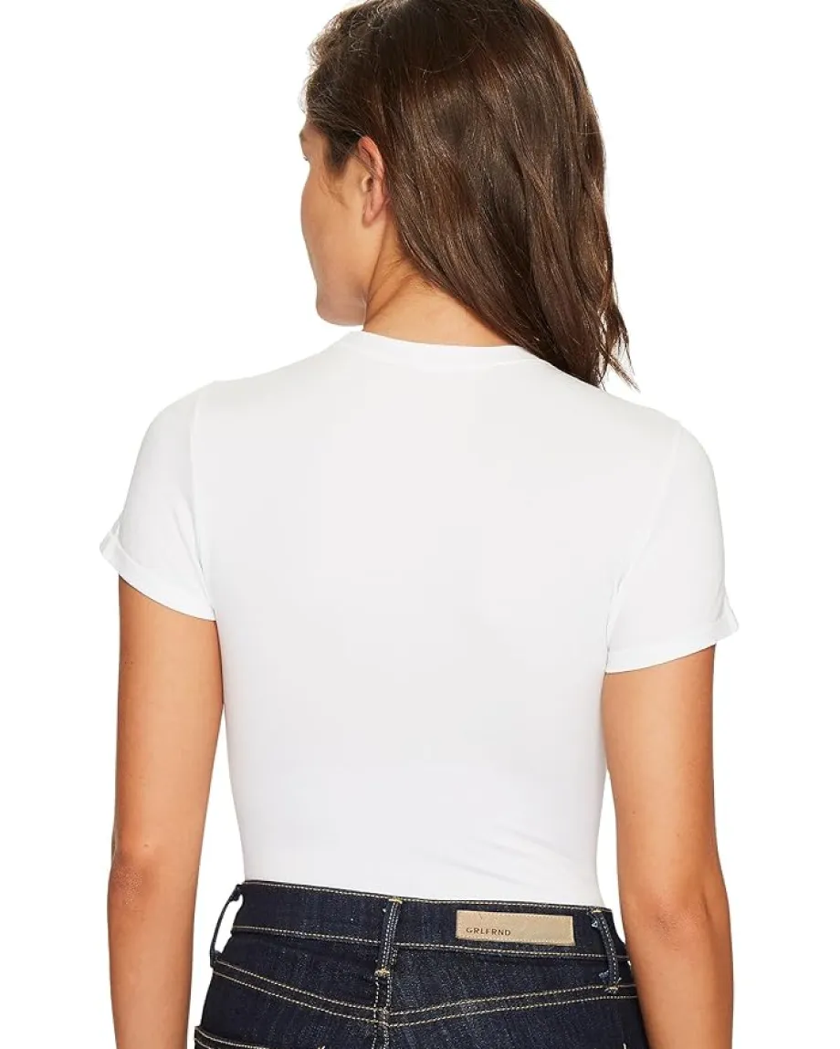 - Crew neck short sleeve bodysuit offers the ideal look for layering.